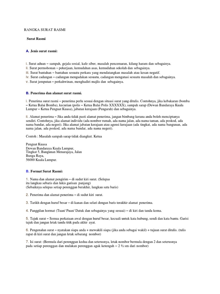 Contoh Surat Rasmi Dan Format Terkini Yang Betul Percuma Template